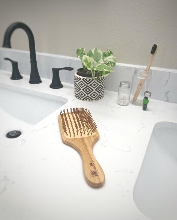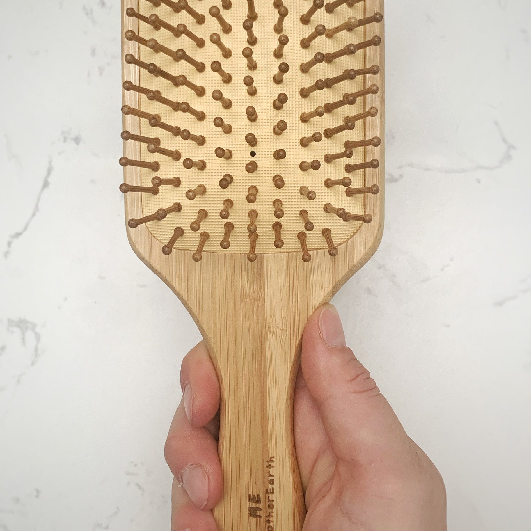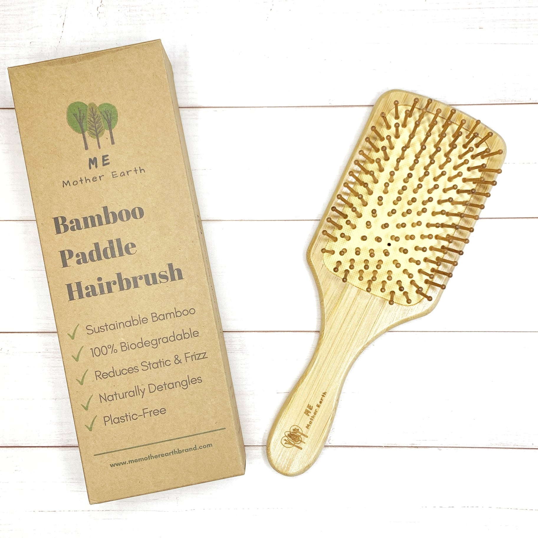 Brush your hair sustainably with bamboo! Not only is this brush made from fast-growing sustainable bamboo, but it is also is gentle; reducing static, frizz, and breakage leaving your hair healthy and detangled.