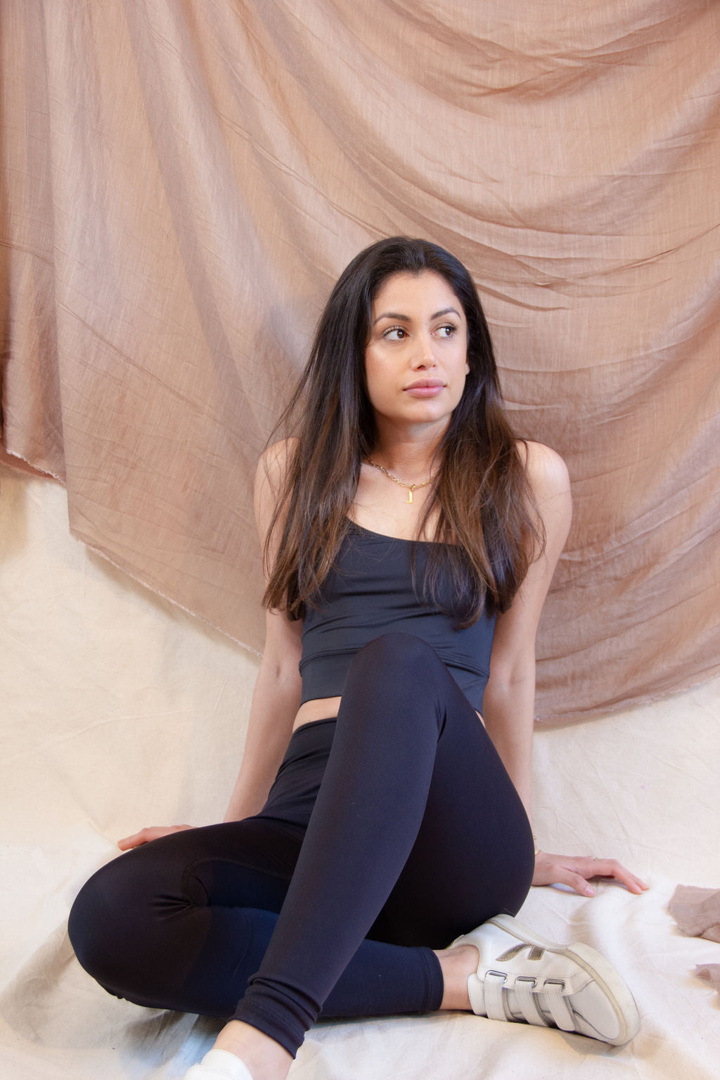 Made from 75% Recycled Polyester (RPET), created from discarded plastic bottles and containers. While it's impossible to get the necessary stretch for activewear without any spandex, we tried our very hardest using only 25% Spandex.