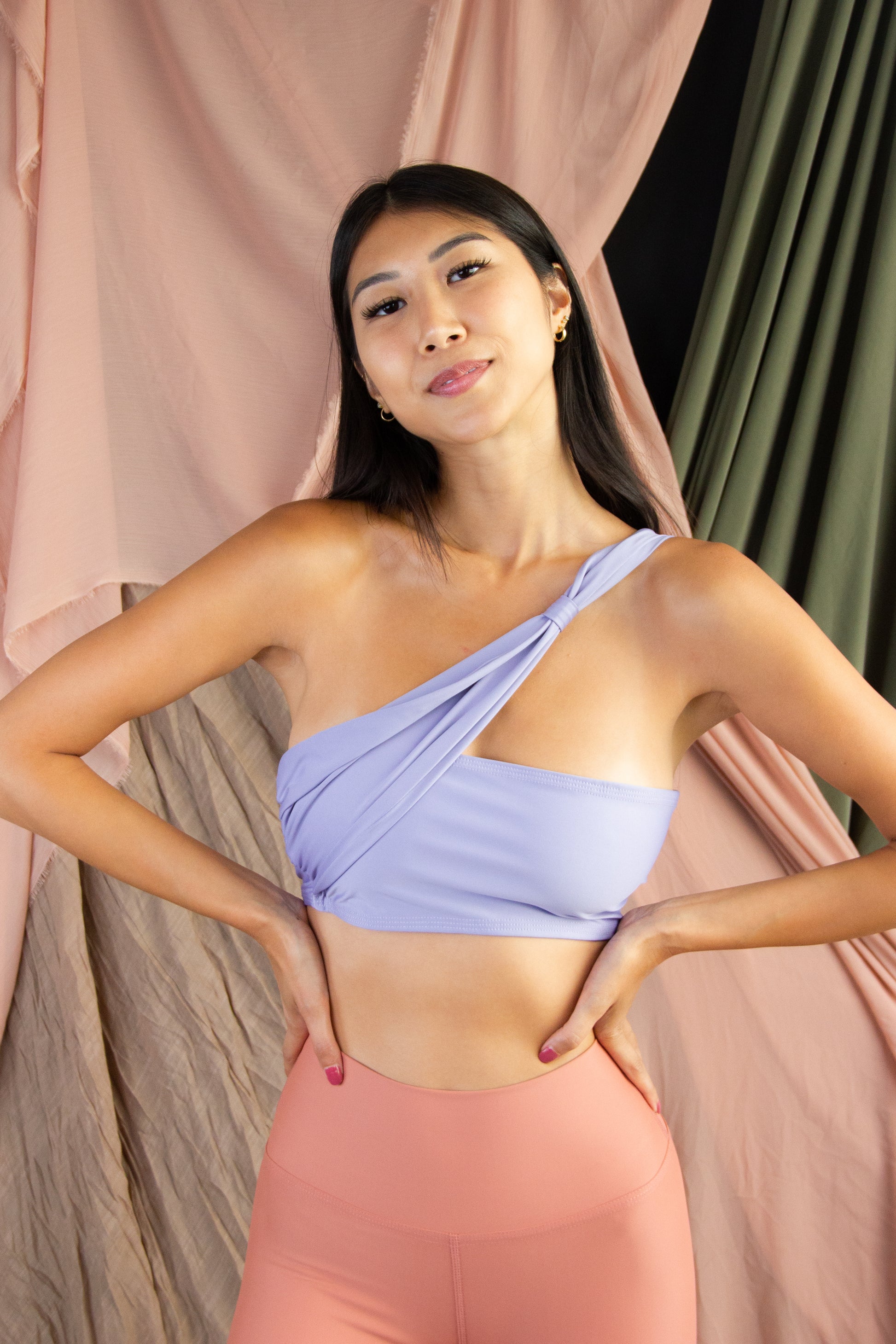 The sleek and subtle look on the go. The Jenna Bra is a hybrid workout bra top that will take you from dinner plans to pilates. The asymmetrical shoulder is perfect for any casual and classy fit. Constructed with seamless, recycled fabric and dyed with organic, natural ingredients.