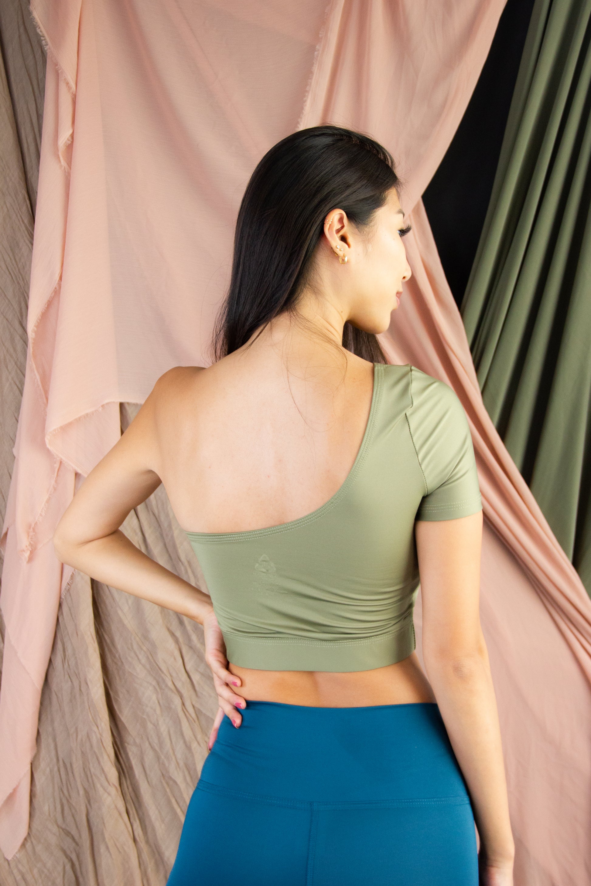 For that workout you promised you’d do last week. This cropped bra top features a short sleeve on one shoulder and banded hem for a sculpted, smooth fit. Comfortable and cute, match it to our Biker Short for an “of course I exercise 7 days a week” fit.