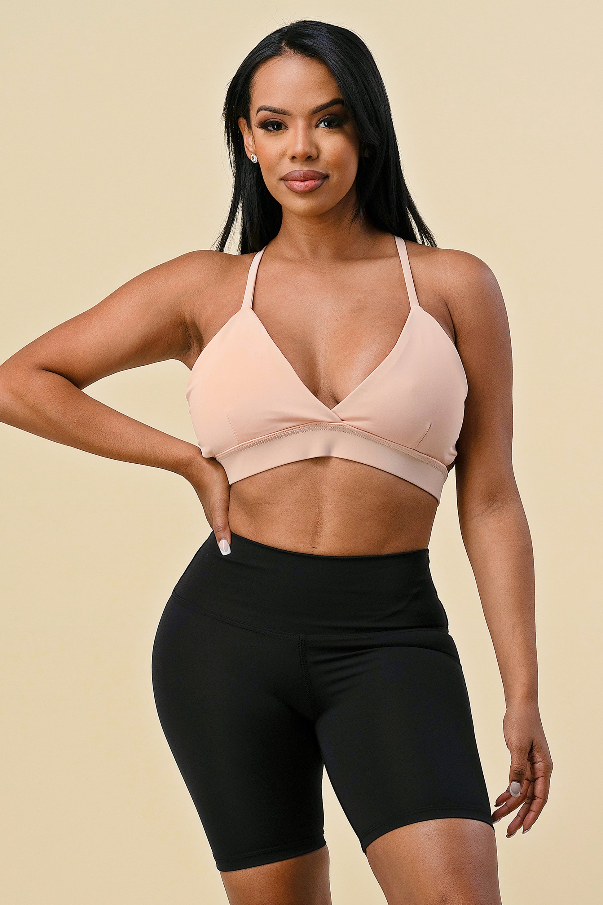The sleek and subtle look on the go. The Shelby Bra is a hybrid workout bra top that will take you from dinner plans to pilates. The low cut with spaghetti cross back straps fits for any casual and classy fit. Constructed with seamless, recycled fabric and dyed with organic, natural ingredients.